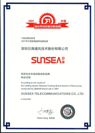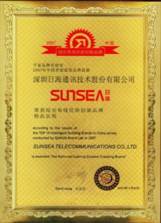 2007年11月29日~30日,尊龙官方智能综合布线受邀前往上海光大会展中心酒店,参加由千家网筹办的“2007年第八届中国国际建筑智能化峰会暨颁奖典礼”,获得了“布线民族创新品牌”特别奖项。